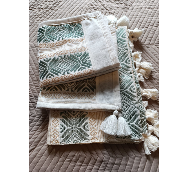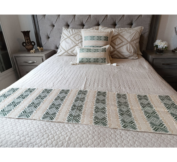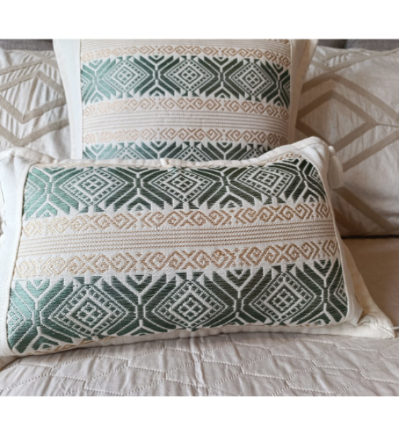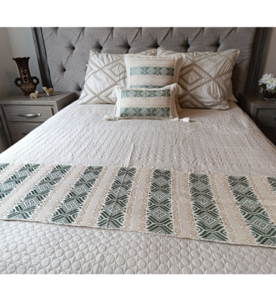 Renueva tu espacio con este Set de fundas típicas para cojín en cuadrado y rectangular, acompañado de un pie de cama elegante y funcional. Ideal para dar un toque moderno y acogedor a tu dormitorio o sala, este set está diseñado para complementar cualquier estilo de decoración con su estilo versátil y sofisticado. Medidas: 1 Funda de cojín cuadrado 50x48cm. 1 Funda de cojín rectangular 50x31cm Un Pie de cama 2.18cm