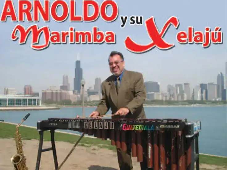 Arnoldo estudió en el Conservatorio Nacional de Música de Guatemala; es saxofonista también. Integró varias marimbas, entre ellas, Murmullo de la Selva, la marimba del maestro Cupertino Soberanis, la de la Fuerza Aérea Guatemalteca y dirigió la de la línea aérea Aviateca. Integró por ocho años la Marimba Orquesta Gallito, con la cual hizo varias giras a Estados Unidos. Pero en 1975 decidió quedarse en ese país: “Saqué el último compromiso que fue en Los Ángeles, y de ahí tomé el vuelo para acá, para Chicago, para comenzar un proyecto”, recuerda.