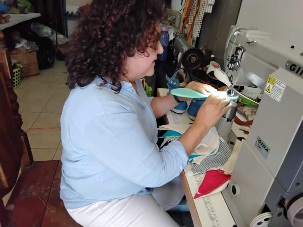“Cuando mi hija era pequeña, tenía su pie un poco ancho y los zapatos le duraban muy poco, o le apretaban mucho. Siempre andaba en busca de un calzado cómodo para ella. Hasta que una vez me regalaron, para ella, unas alpargatas que le quedaron bien y no le molestaban para nada. Al ver eso, un día las desarmé por completo, las despegué para ver cómo estaban hechas. Porque yo mismo quería fabricárselas a mi hija”, relata María “Toni” Jerónimo acerca de cómo nació su habilidad para fabricar calzado femenino que ahora vende con la marca Ninnke
