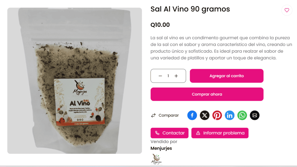 Cristina Contreras Herrera es una mujer guatemalteca que encontró en la necesidad y la creatividad una oportunidad para emprender. Su negocio, una tienda virtual llamada Menjurjes, ofrece una variedad de productos comestibles artesanales como sal al vino, sal con hierbas, aliños de cilantro, de albahaca y otros ingredientes que transforman cualquier platillo cotidiano en una experiencia de sabor.