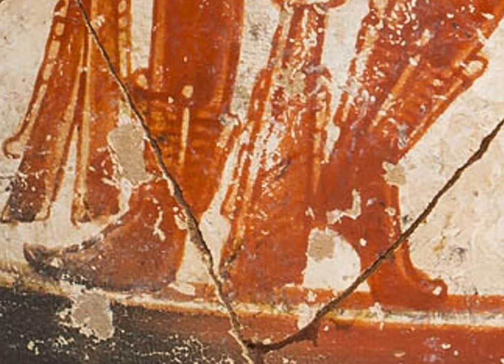 Su talón elevado y los largos extremos exteriores de su taparrabos indican un movimiento vigoroso, replicando las estrellas que “bailan” en círculos alrededor de la Estrella del Norte, a veces llamada “Corazón del Cielo”.