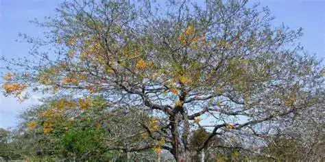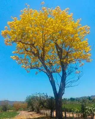 Características: Árbol de crecimiento rápido que alcanza hasta 20 metros de altura. Su característica más distintiva es su corteza de color blanco a gris claro, que se desprende en láminas delgadas. Florece con racimos de flores amarillas intensas.