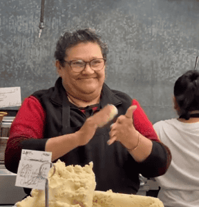 “Este año nos dieron oportunidad de participar en un festival local. Tiene más de 25 años de existir. En ese festival llega gente de todos países y hay comida internacional. Pero no había anunciado nada de Guatemala. Le platiqué la idea a mi mamá, que vive acá conmigo. Preparamos shukos y también mixtas. Ella preparó las tortillas de puro maíz. Repartí volantes y vendimos todo. Había panes con longaniza, chorizo, salchicha o carne asada. Pero lo acompañábamos con frijoles voletados, cebollita. Todo mundo encantado”.