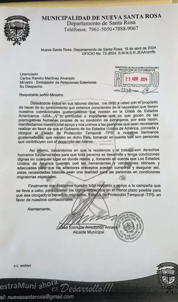 Hasta el momento, el movimiento TPS Guatemalteco ha recibido cartas dirigidas al Ministro de Relaciones Exteriores para pedirle que haga todas las gestiones necesarias para que esta petición sea escuchada.