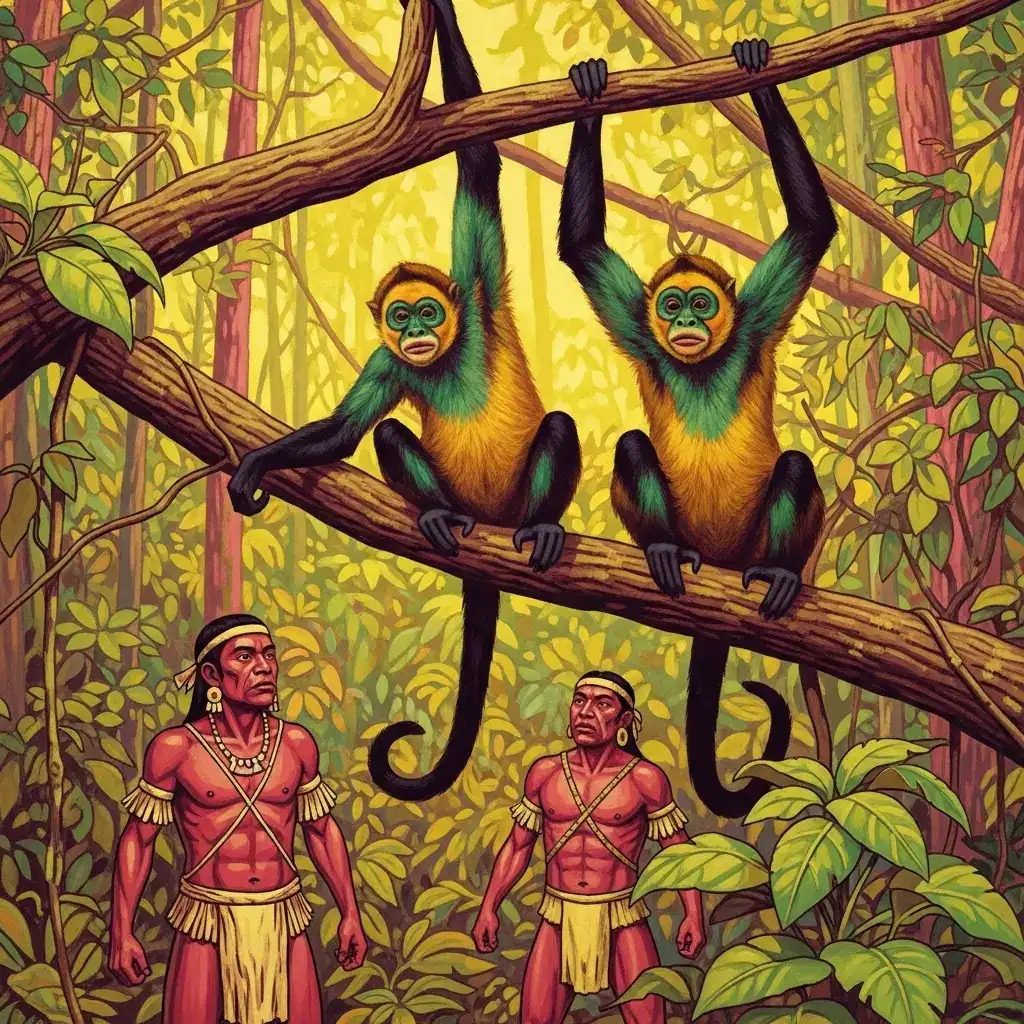 Por su soberbia y envidia hacia sus hermanos, Hun Batz y Hun Chouen quedaron convertidos en micos... y aún lo son