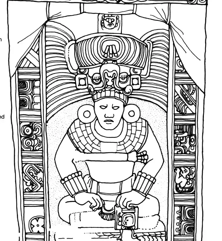 Esta escultura en piedra data aproximadamente del año 729 y muestra al Gobernante 4 de Piedras Negras, Petén en el momento de asumir el trono. Este gobernante habría estado en el poder hasta el año 757.