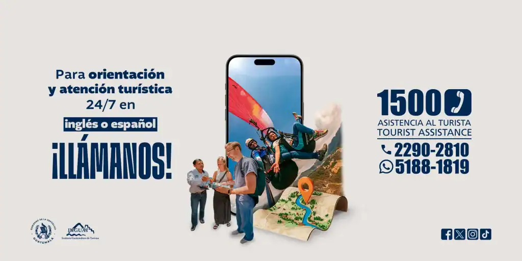 El Instituto Guatemalteco de Turismo y el gobierno de Guatemala mantienen activo el sistema Asistur, de Orientación y Asistencia al Turista, disponible las 24 horas del día, los 7 días de la semana, en inglés y español. El número a marcar es el 1500 y también el 2290-2610. También existe la opción de tener ayuda por Whatsapp en el 5188-1819.