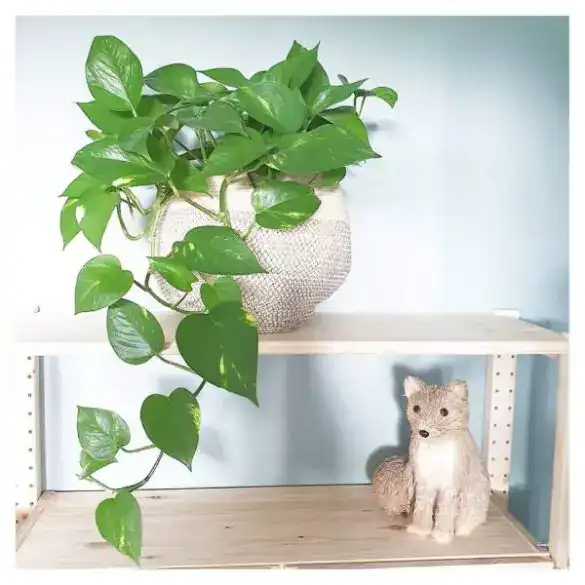 El potos es una de las plantas más resistentes y fáciles de cuidar, ideal para escritorios y cómodas.