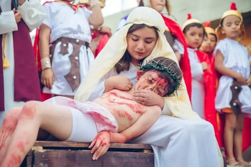 Toda representación en vivo de la Pasión de Cristo tiene elementos de dramatismo, dolor y realismo que impresionan. Pero cuando es representada por niños, adquiere un tono conmovedor, que incluso a algunas personas puede impactarles fuertemente.