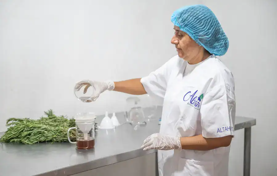 Hilda y Celia responden las preguntas en cámara, se efectúan las tomas de productos y de parte del proceso de elaboración. “Toma tiempo macerar las hierbas para extraer sus esencias”, explica Hilda, mientras muestra un recipiente de hojas de romero en ese proceso. Por trabajo no está Lili, otra hermana que también ha invertido en ese emprendimiento.