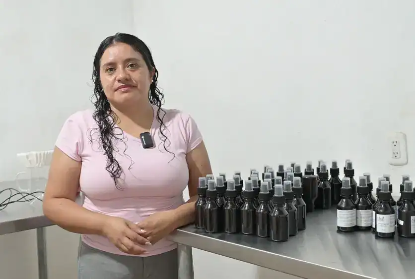 Los aceites que distribuyen son para limpieza y nutrición facial o para aplicar en el cabello. Han construido un espacio para su laboratorio, con dos mesas industriales. Envases llenos y otros que esperan, con la boca abierta, a que esté listo nuevo producto. Etiquetas tornasol para mejor presentación. Todos los emprendedores de MERCADO se esfuerzan por brindar calidad y creatividad.
